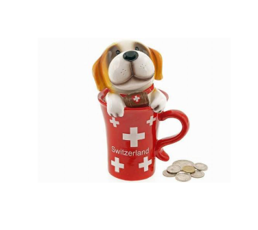 MONEY BANK CUP RED WITH DOG ST. BERNARD 8 X 17CM. - 72-0760