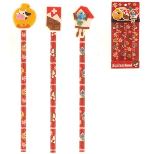PENCIL - SWITZERLAND COW+CHOCO+CUCKOO - RED SET OF 3 - 72-1622