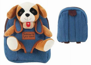 BLUE-JEANS BACKPACK WITH PLUSH ST BERNARD DOG