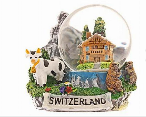 SNOW BALL 7CM WITH RELIEF BASE COW CHALET VIEW - 72-0030