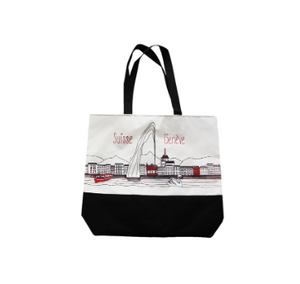 FOLDABLE SHOPPING BAG RED 46X30 WITH NAMES OF CITIES SWITZERLAND-721490