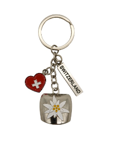 KEY RING BELL EDELWEISS HEART SWITZERLAND